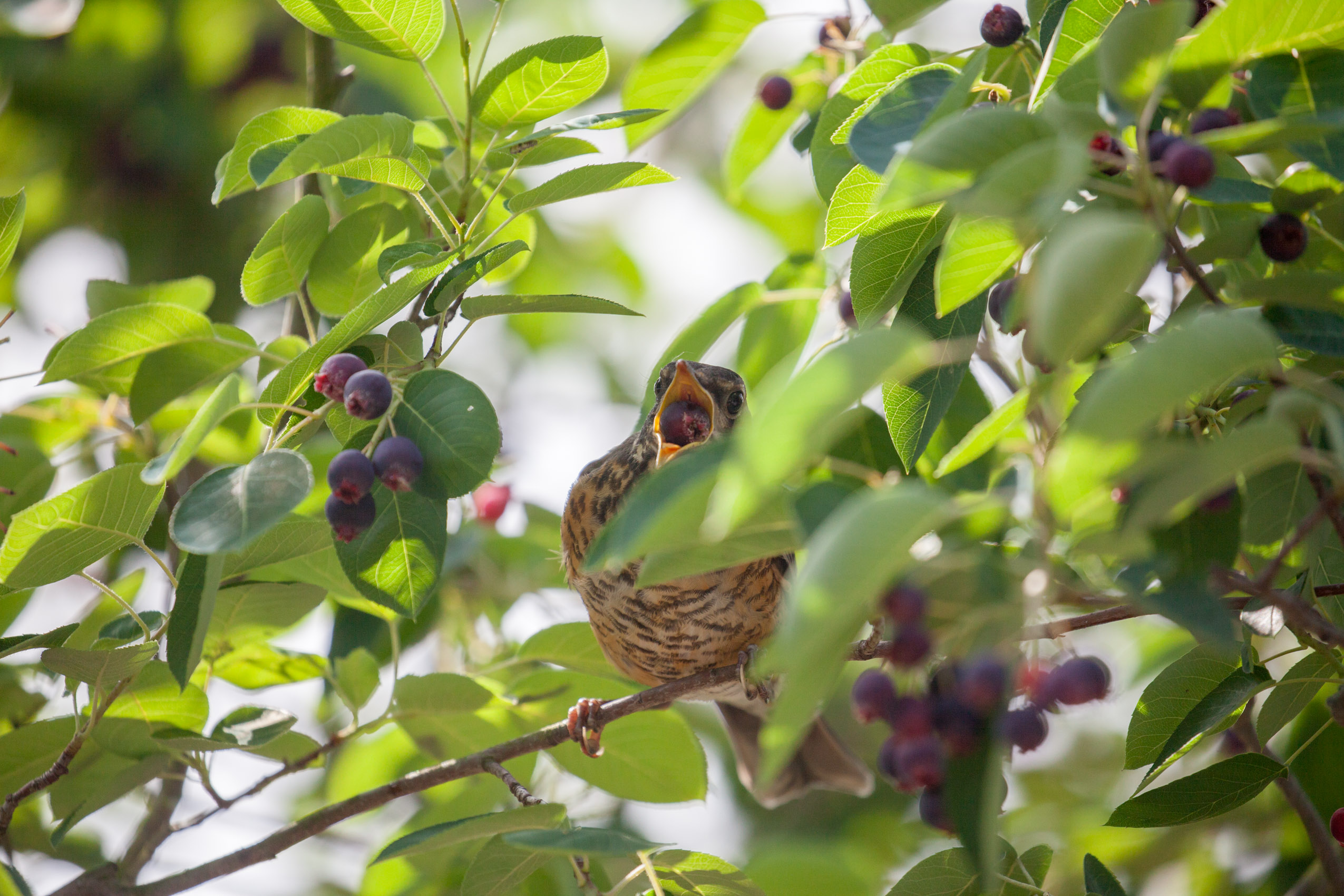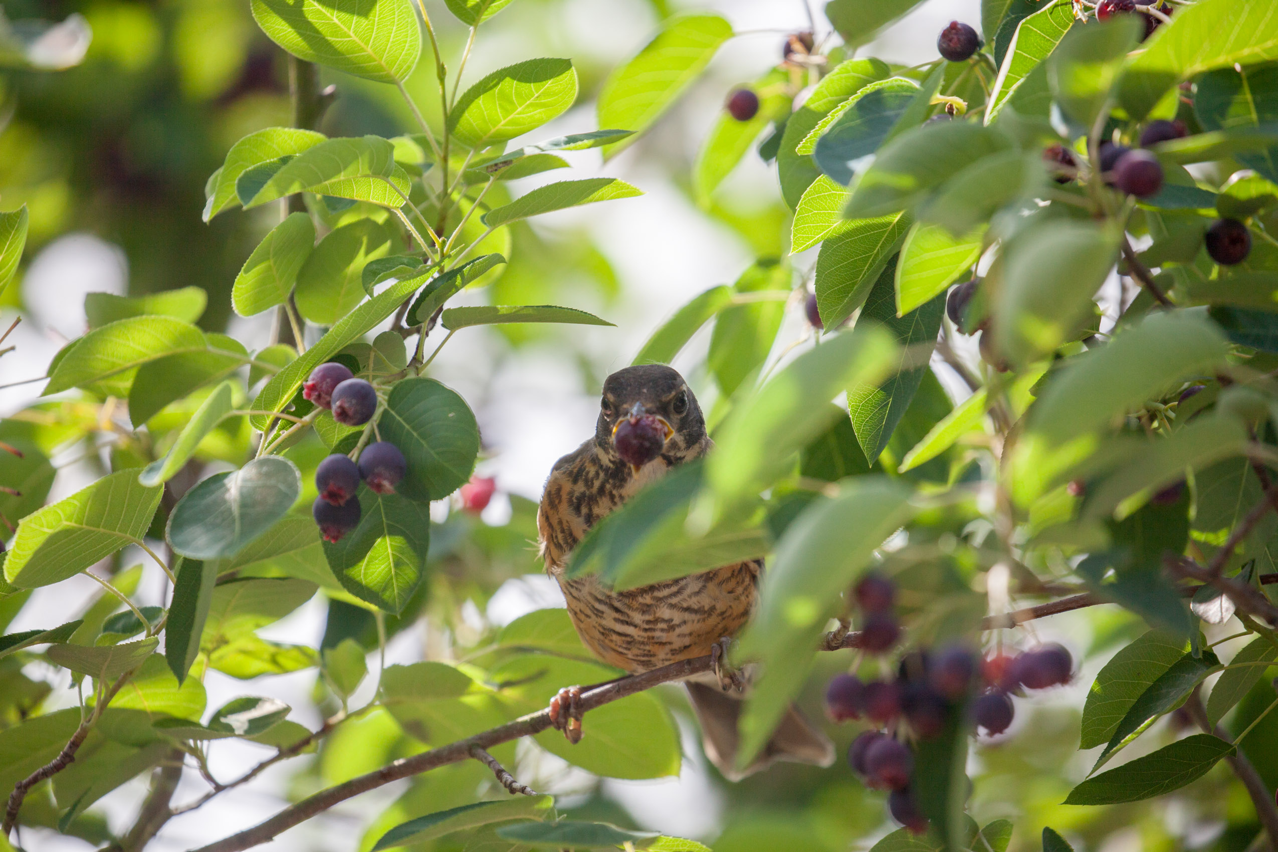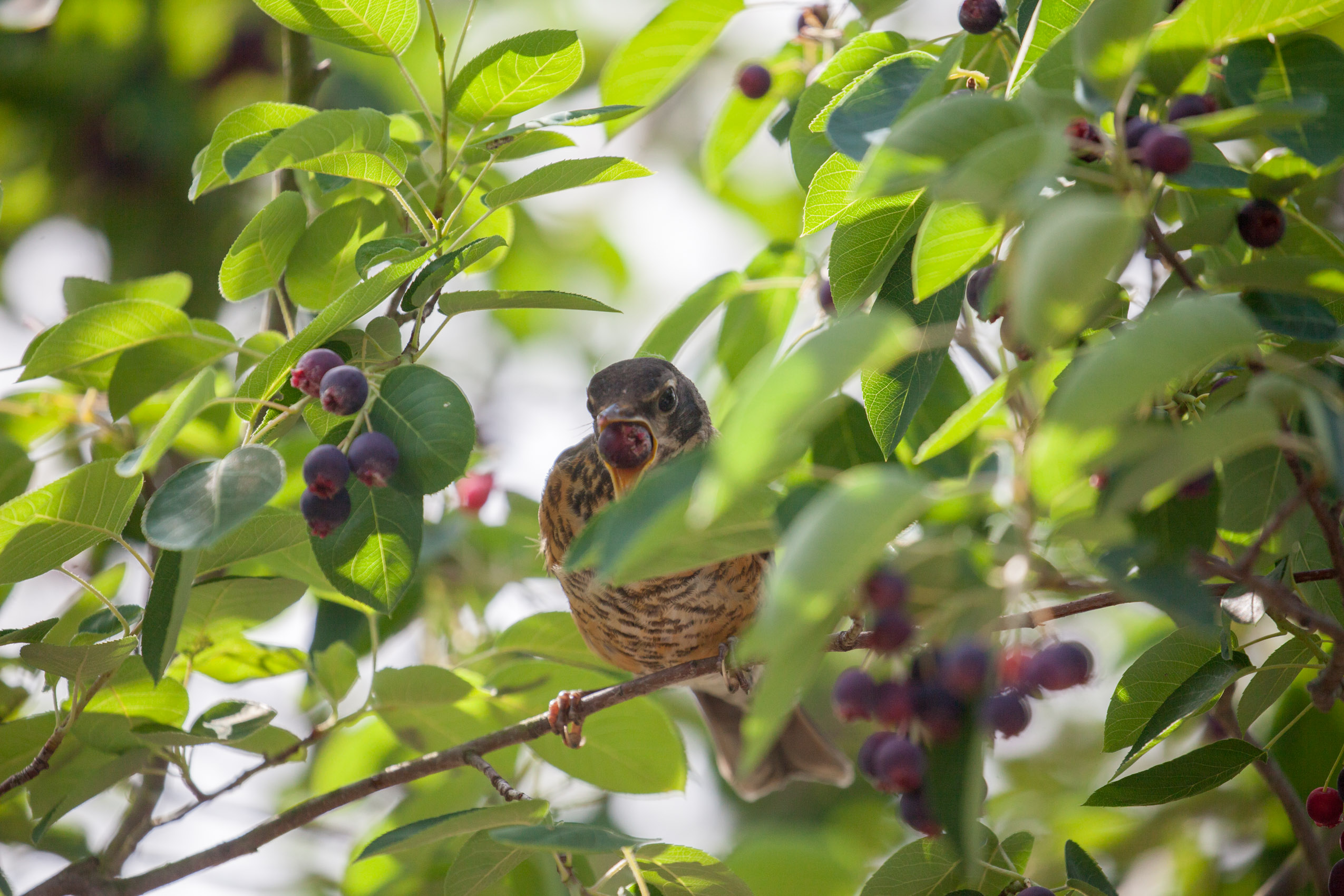 A juvenile Robin snackin'