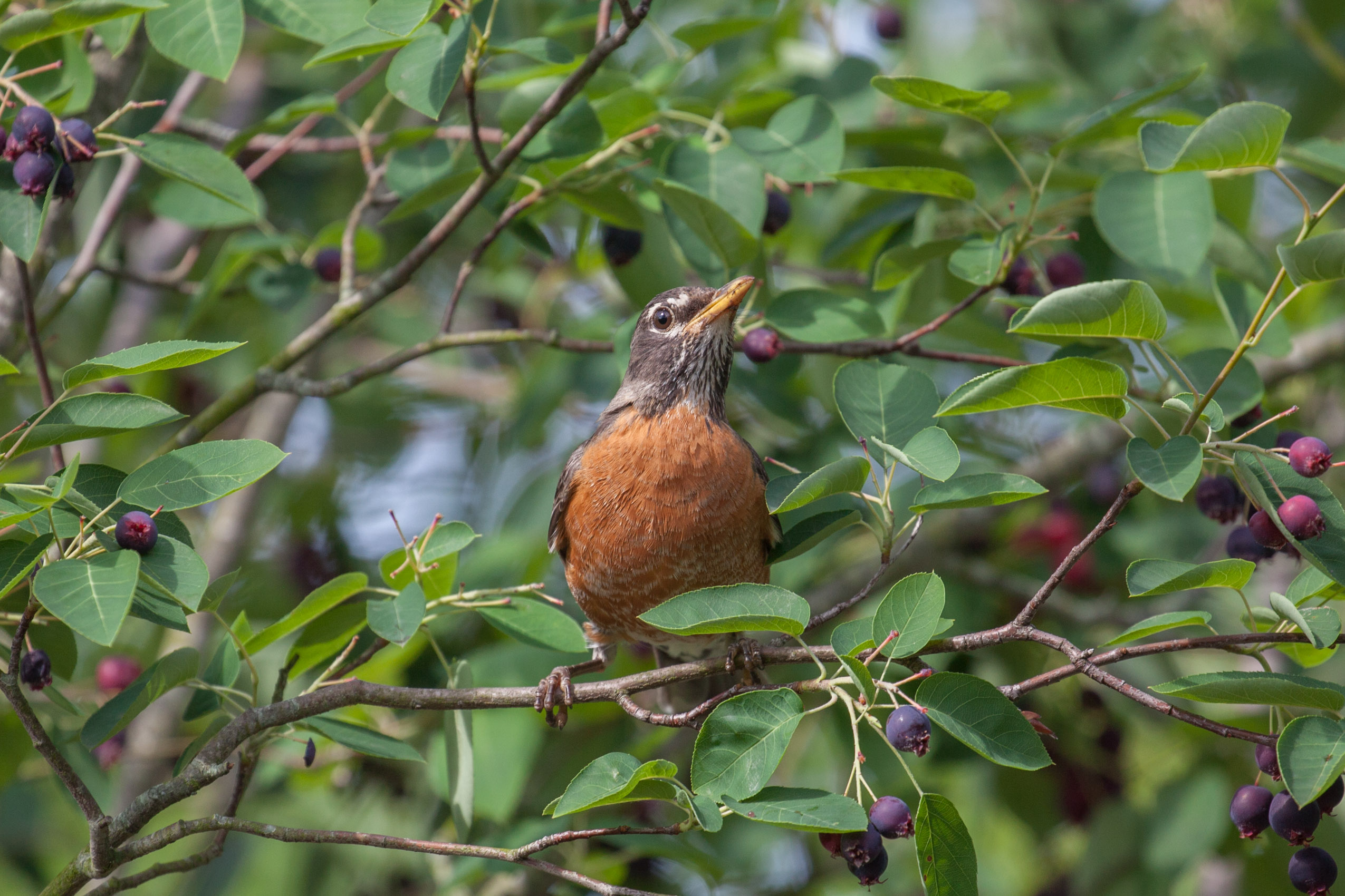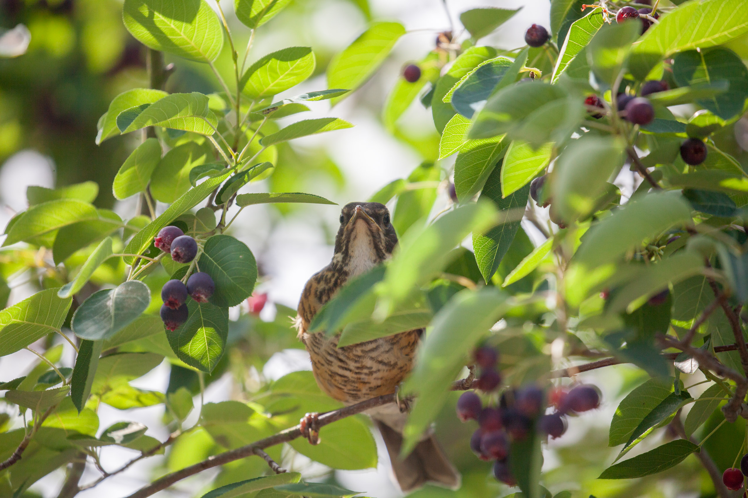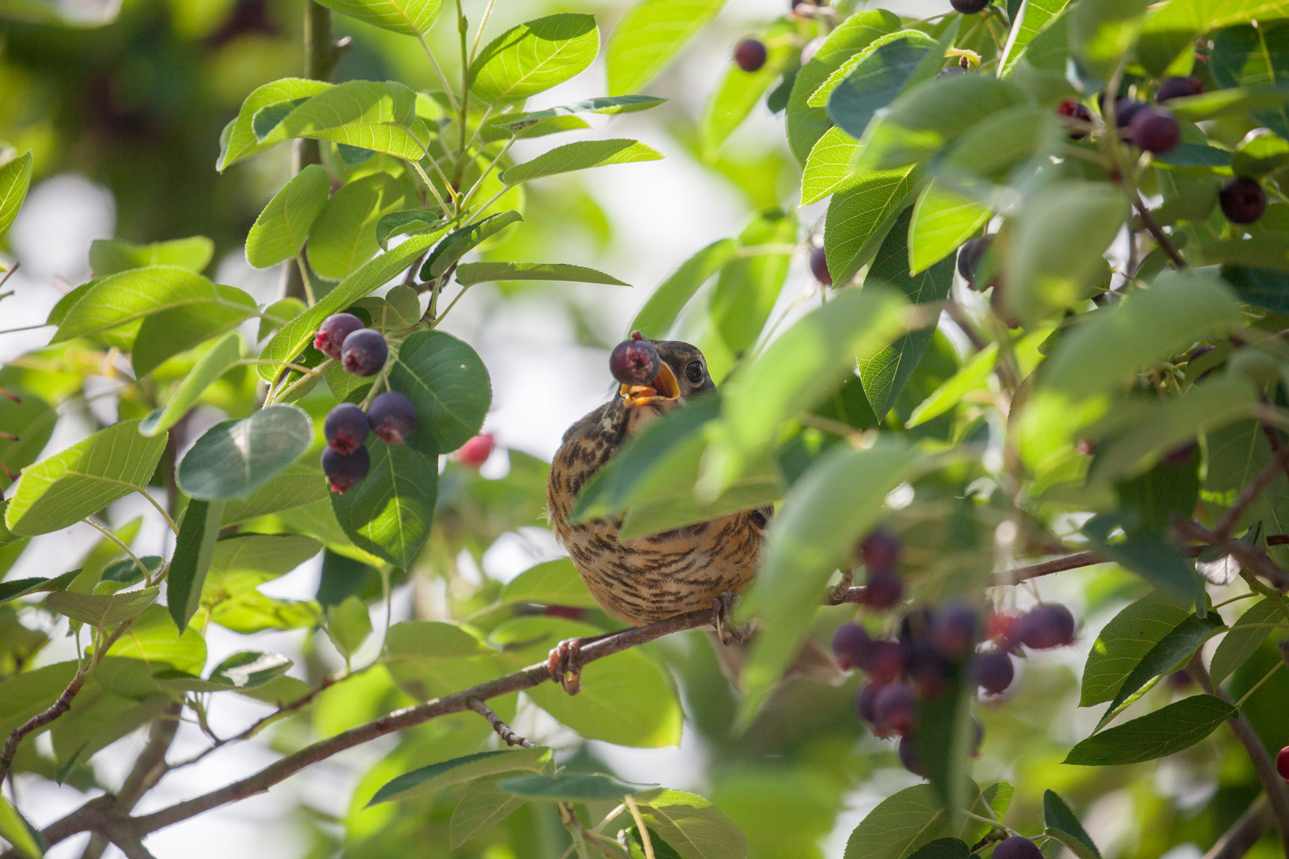 A juvenile Robin snackin'